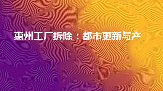 惠州工厂拆除:都市更新与产业升级的根本